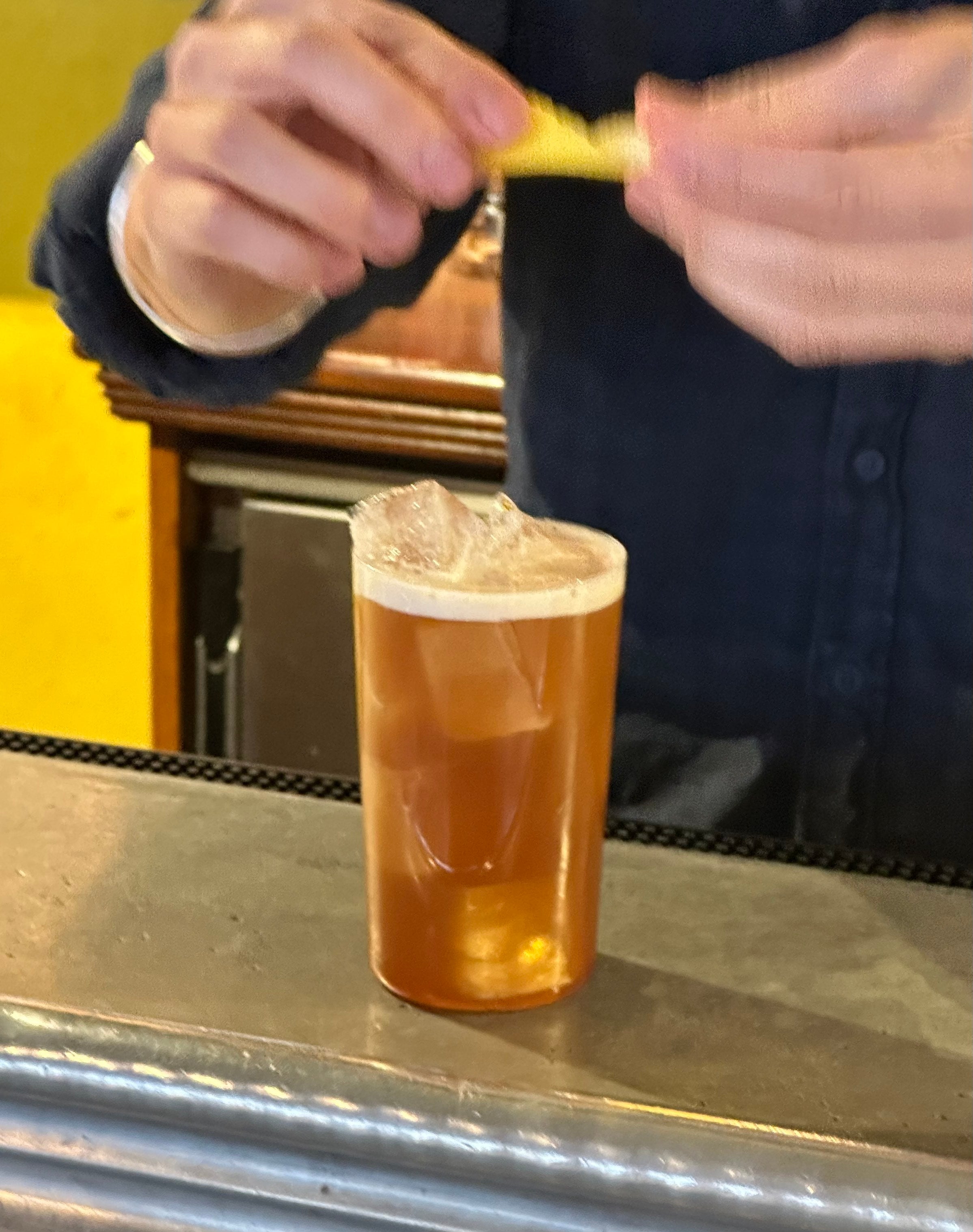 Fill the shaker with ice and 3 cl Cold Brew Espresso, 4 cl Vodka or Gin, 5 cl Sour mixand 2 cl Monin Coconut Syrup