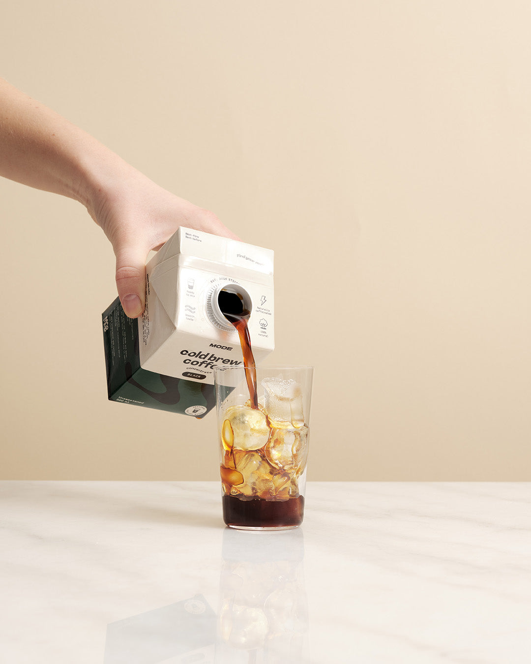 It depends if you mean in caffeine or taste. The taste of Mode Cold Brew is always smooth and refreshing. We believe life is to short for bitter coffee. Therefore, we make our coffee using time instead of heat. Our 100% arabica beans are always brewed for 24 hours in pure and cold filtered water. And it’s always worth the wait. Not only does this cut down on acids and bitterness, it also brings out all the best flavors. From the chocolatey and nutty notes to the smooth and refreshing taste, you’re gonna love every sip. We believe getting your caffeine fix doesn’t have to come with drawbacks. Mode Cold Brew Coffee contains more caffeine than traditional hot brew and espresso. With exactly 130 mg of natural caffeine per 100 ml and significantly less acids than the average Joe, our cold brew concentrate puts the superpowers of caffeine under your total control. See ya never jitters and stomach aches. 500ml concentrate contains 650 mg natural caffeine.
